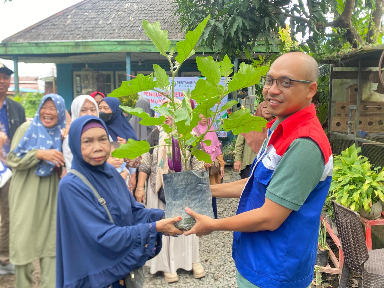 “Ini kegiatan lanjutan yang kemarin. Sebelumnya tanaman cabai, sekarang ini kita bagikan tanaman terong,” ucap Adi Lukman selaku Community Development Officer PT. Pertamina Patra Niaga Integrated Terminal Banjarmasin.