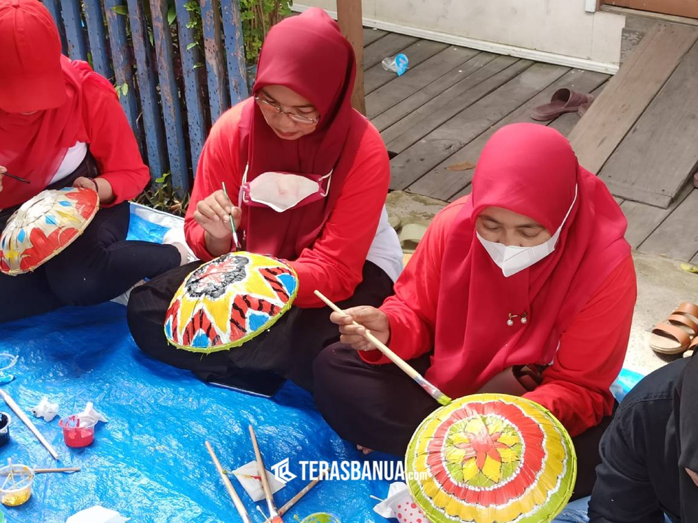 Dari pantauan terasbanua.com di lapangan, dari  anak-anak, ibu-ibu hingga bapak-bapak terlihat tengah asik mewarnai tanggui miliknya masing-masing dengan desain yang disuka.