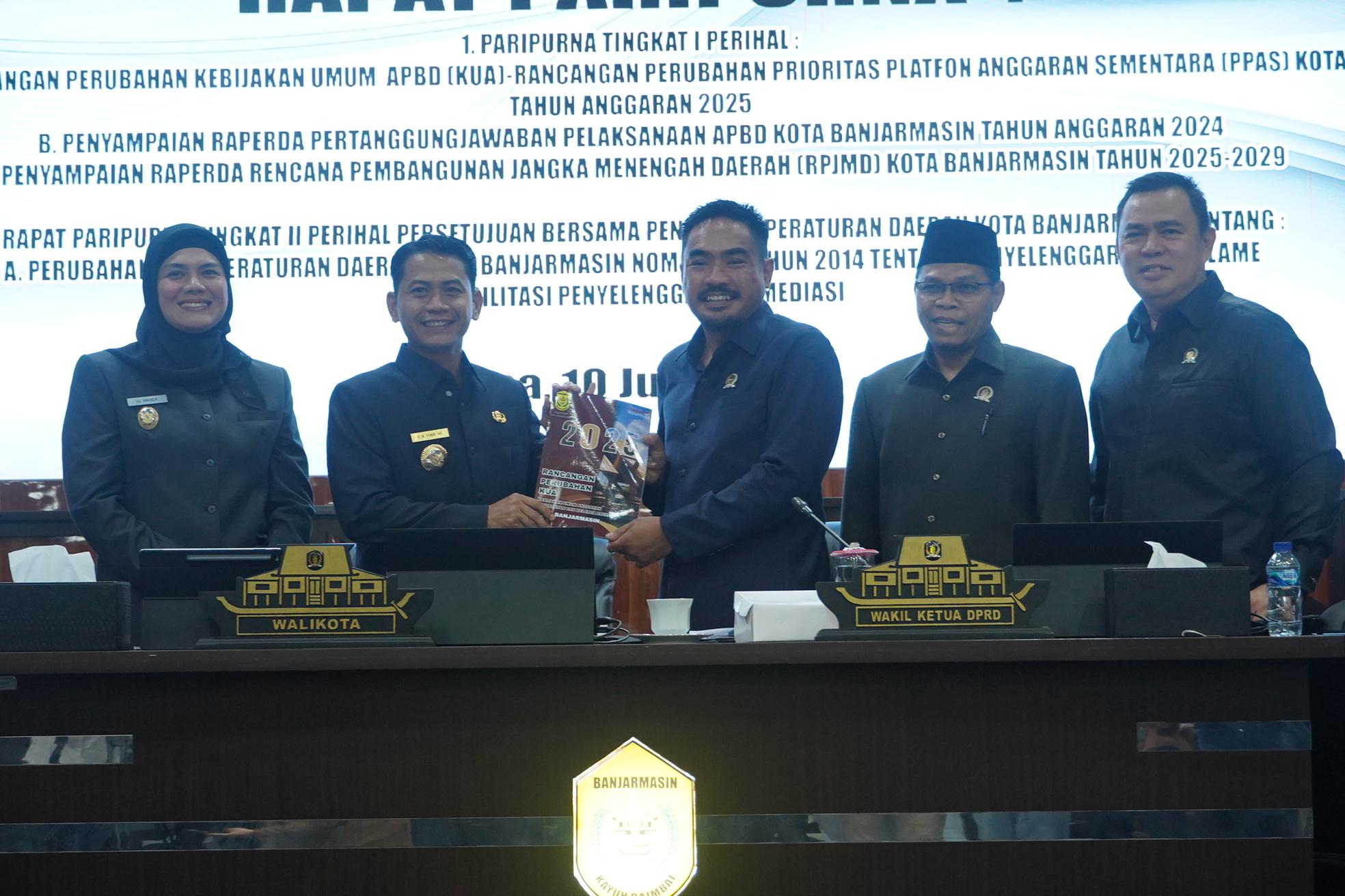 1. DPRD Banjarmasin menggelar rapat Paripurna Tingkat I Perihal Penyampaian Rancangan Perubahan Kebijakan Umum APBD (KUA) – Rancangan Perubahan Prioritas Plafon Anggaran Sementara (PPAS) Kota Banjarmasin Tahun Anggaran 2025.